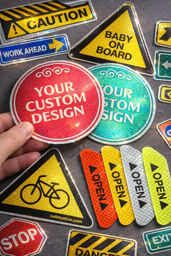 שימושים נפוצים: שלטי בטיחות, סימוני אזהרה והכוונה, שילוט רכב ותמרורים, ציוד חירום, סימון רצפות ומעברים.