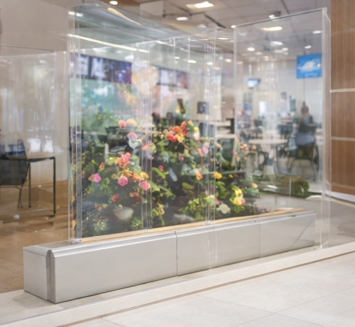 החומר מספק שקיפות גבוהה ומראה נקי, ומתאים למגוון יישומים עיצוביים ותצוגתיים.